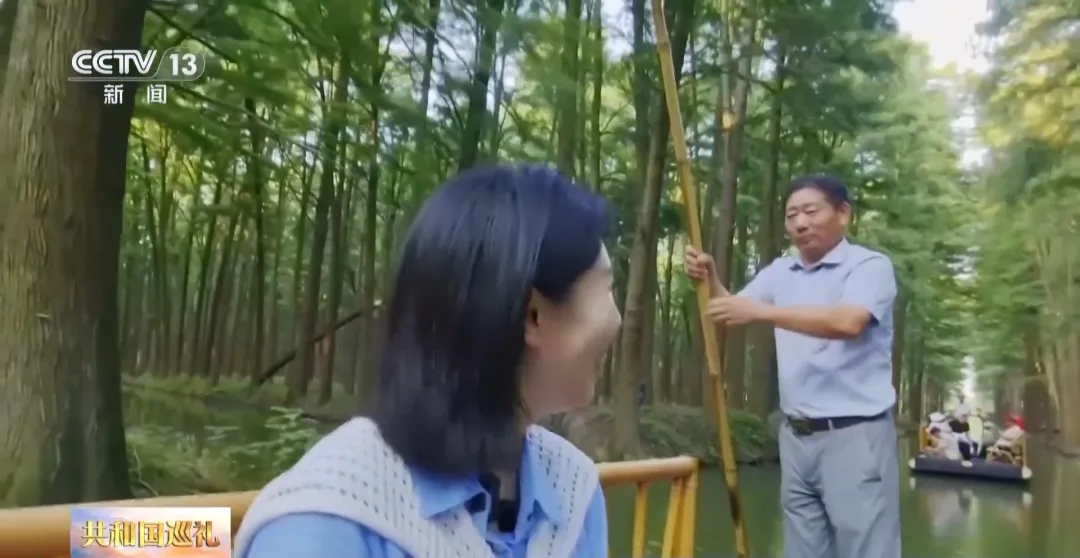 撐船師傅:我們這邊原先鳥不多,種出來這片森林以后,鳥開始增多了,現(xiàn)在有十幾萬只。水中有魚,林中有鳥,這里是一個森林氧吧,負(fù)氧離子非常高,每年我們接待80萬人左右——水上森林走一走,想活多久就多久!