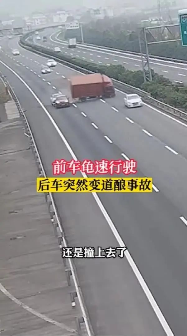 14時53分許,在S10溫州繞城高速仰義方向烏牛高架橋路段,孫某駕駛一輛紅色小車在第三車道上緩慢低速行駛。貨車駕駛員向某多次用閃光燈提醒,但孫某卻絲毫沒有提速,向某見紅車打算停車,便沒有觀察后方情況直接變道。后方正常行駛的謝某避讓不及追尾了大貨車,隨后與紅車相撞。事故造成三車受損,所幸駕乘人員均系好安全帶,未受傷。